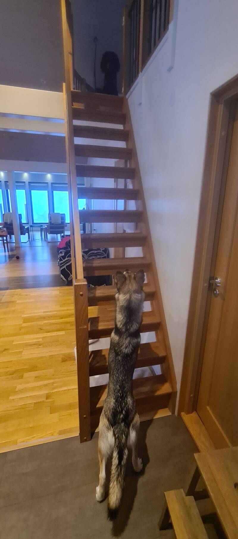 Huskyn kände på trappan, avstod men ville veta att allt var dom det skulle.